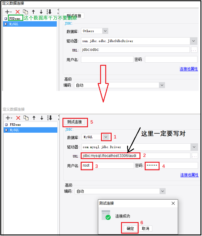 ② 数据库连接:完成下面的1,2,3,4,5,6步骤