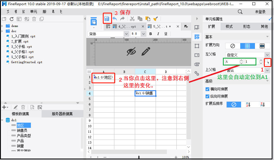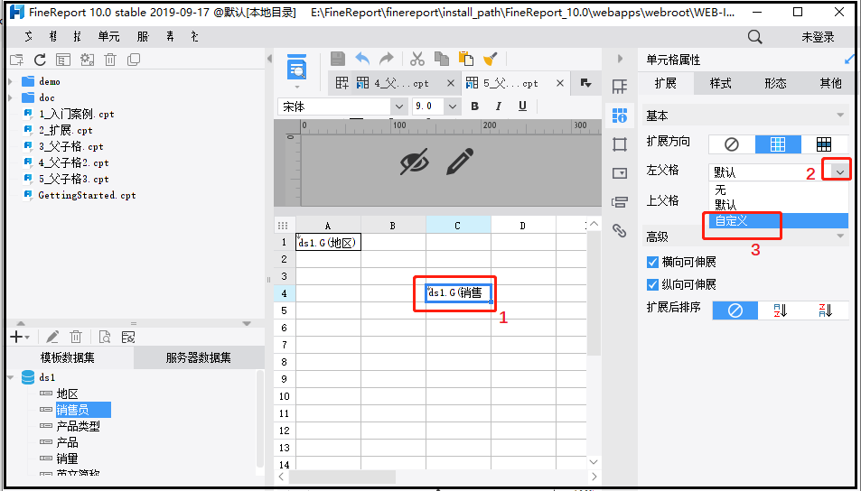 父子格是在进行不同字段之间,进行直接连接,起到了很重要的作用。比如说字段B是按照字段A求和,那么你就需要指定B的父子格就是A。这样说显得很抽象,学习下面的例子后,你就会有一个简单的了解啦。