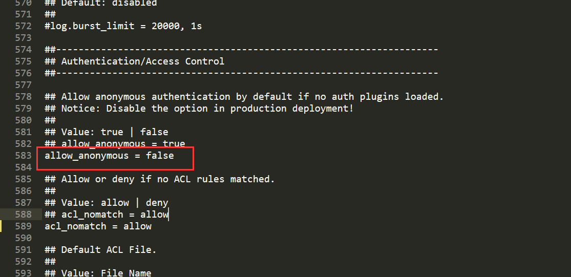 ACL认证在遍历时是按照顺序来做遍历的,我这里设置为允许他订阅,实际上相当于没有设置。