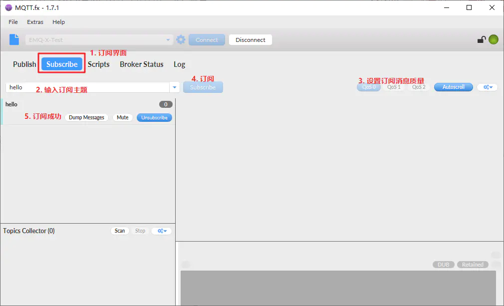 使用mqtt.fx作为mqtt客户端进行测试: