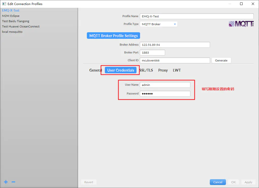 然后我们使用官方的MQTTX工具测试连接