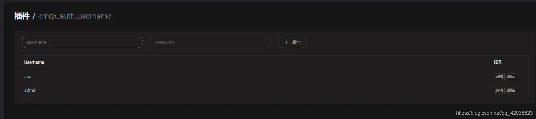 点击emqx_auth_username 的管理功能