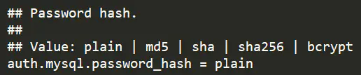 可以看到这里的密码加密方式是sha256,说明我们连接时候的密码是加密后才与数据库内的password字段的值做匹配。这里我们可以改成plain明文不加密,又或者我们可以把数据库的字段改成sha256加密后的字段。