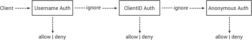- 当开启 Username 认证之后,系统会忽略 Client ID 认证和匿名认证;